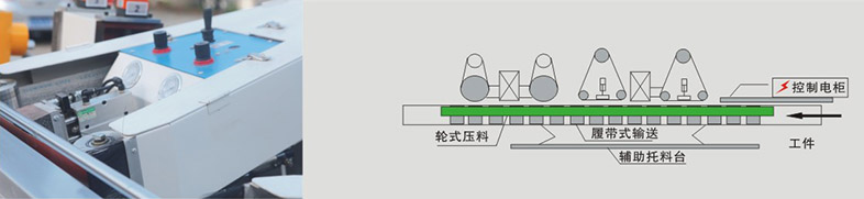 ●压料装置采用轮式(可选皮带式)压料,输送平稳,工件无跳动,不伤工件表面。