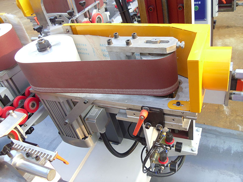 可装砂带和异形轮,适合各种平面白胚油漆砂光,可安装各种轴孔为25.4的各种打磨轮和1150mm长的环形砂带,主电机1.5kw 变频调速。